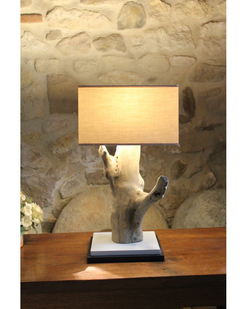 Simplicité et élégance! Un bois flotté de caractère pour cette lampe à poser qui embellira votre salon.